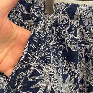 Stylish navy blue shorts with a white leaf print. Perfect for casual outings. Wide Elastic & drawstring waistband.