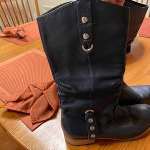 Navy Blue leather boots, wore only a handful of times. They are in really good condition.
