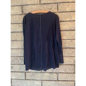 Navy Blue Long Sleeve Top With Lace-Up Neckline Yellow Stitching & Blue Patterne
