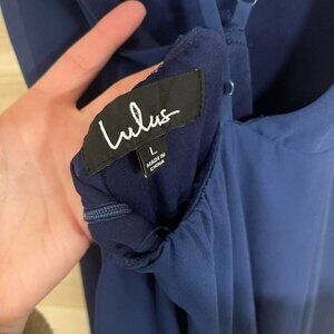 Navy blue Lulus maxi dress. Great event dress. Needs to be cleaned. Had some stains on the front chest area. Size L