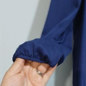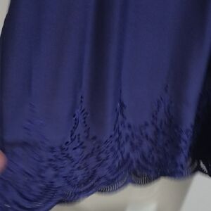 Elegant navy blue dress with intricate detailing. Perfect for any occasion.