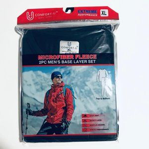 Navy Blue - Men Thermal 2 PCS Set Microfiber Fleece Crew Neck Top & Pants XL
