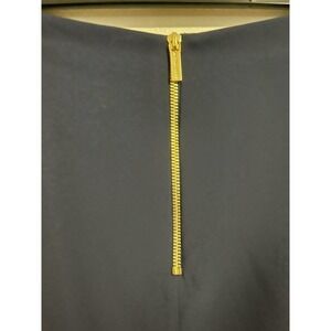 This skirt has a gold zipper in the back giving it a little extra something. It also has a small slit on the front side to make it easier to walk in.
