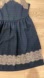 Lined, Chic navy blue midi dress by Bar III. Features elegant lace detailing. Perfect for stylish occasions.