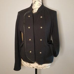Navy Blue Military Look Blazer w/Faux Leather Trim