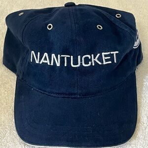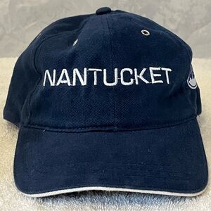 Stylish navy blue cap with 'Nantucket' embroidery. Perfect for casual wear.
