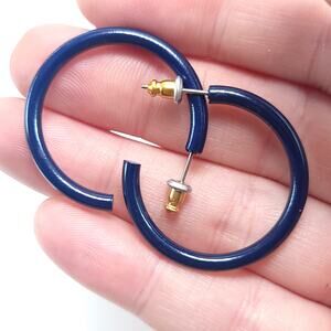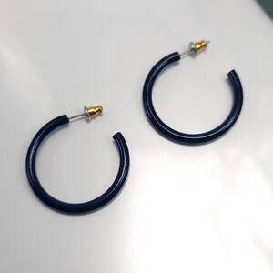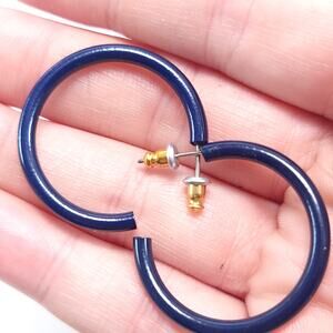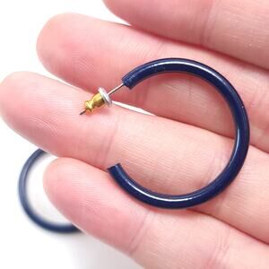 Navy Blue Open Hoop Earrings, Minimalist Modern Fashion Jewelry for Women