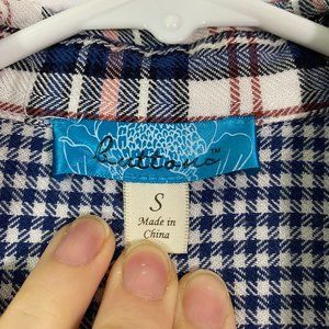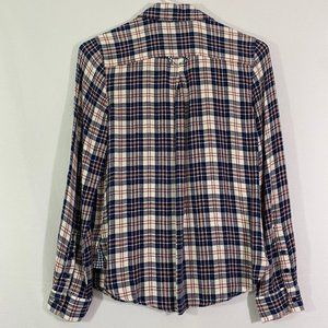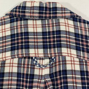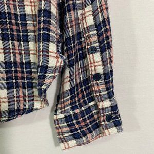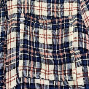 Navy Blue & Pink Plaid Button Shirt Roll Tab Sleeve