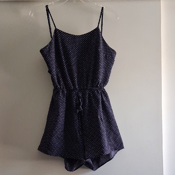 Navy Blue Polka Dot Shorts Romper Tie Back Adjustable Straps Small