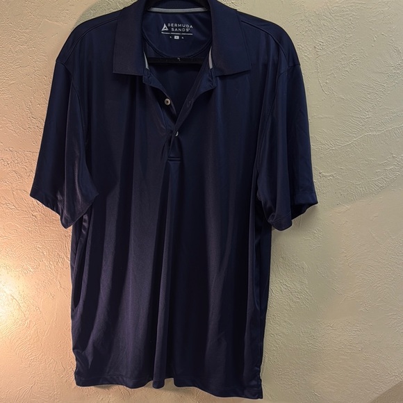 This navy blue polo shirt showcases a classic collar and short sleeves, ideal for a casual yet polished look. The textured fabric hints at a comfortable knit material, making it perfect for everyday wear. Enjoy the relaxed fit that ensures comfort throughout the day.
