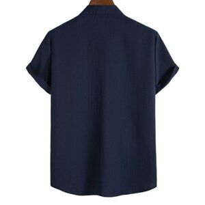 Navy Blue Preppy Mens Solid Button Up Shirt
