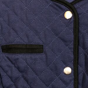* Navy Blue diamond-quilted farbric with black trim and silver tone snaps