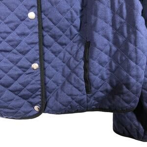 Navy Blue Quilted Crop Jacket- Plus Size 2 Slide In Pockets Snap Front Merona