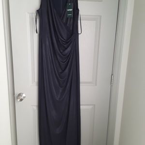 Navy Blue Evening Gown with a Slit to the thigh on the front right side
