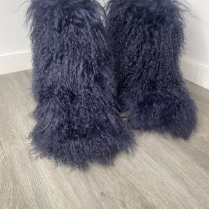 Luxuriously crafted shaggy genuine fur boots offer a cozy and stylish solution for chilly days. The plush fur lining provides exceptional warmth and comfort.