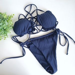 Navy Blue Ribbed String Bikini NEW