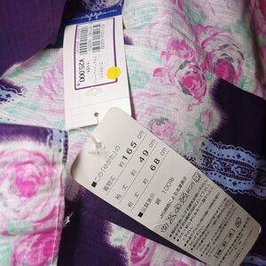 This listing is for a new with tags adult women's yukata, a Japan import from the "Private Label" brand. It features a dark blue background with roses and silver metallic accents, complemented by a subtle blue lace print. The original price was 25,000 yen. The yukata will be shipped with care; no obi is included. The tag indicates a kimono length of approximately 165 cm, sleeve length of 49 cm, and overall length of 68 cm. Made from 100% cotton.