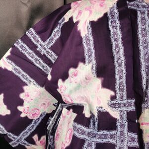 Navy Blue Rose Lace Womens Yukata Kimono Floral Summer Japan Vintage Rare Retro