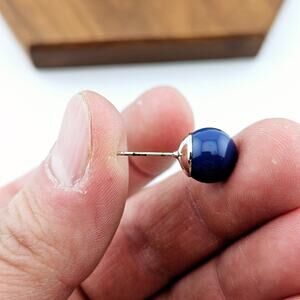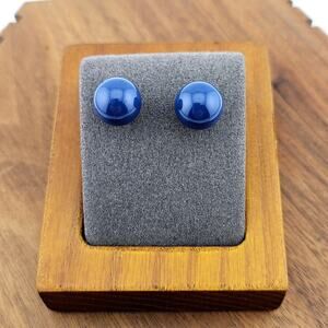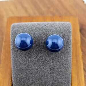 Navy Blue Round Stud Post Earrings Silver Tone Back Minimalist Classic Nautical