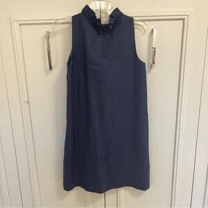 Stylish midnight blue dress featuring a charming ruffle neckline. Ideal for casual outings.