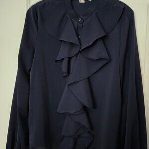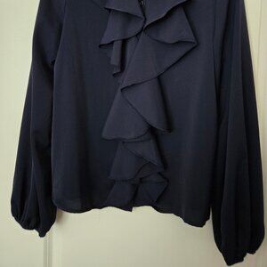 Navy Blue Ruffle Front Poets Blouse