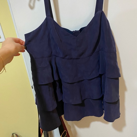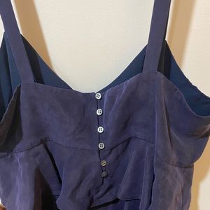 Club Monaco navy blue ruffle tank. Button detail in the back. Never worn and super cute!