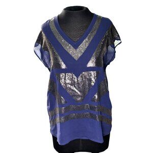 Navy Blue Sequin Top By Black Saks Fifth Avenue Size M