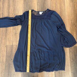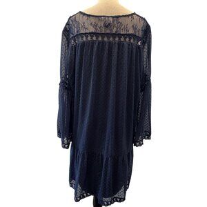 Navy Blue Sheer Lace Dress Sz 20 Bell Sleeves Tiered Lined JunaRose Romantic