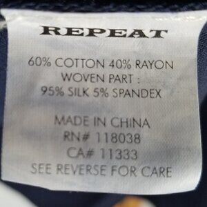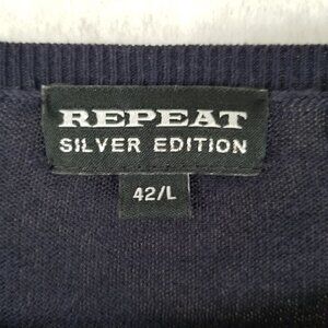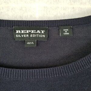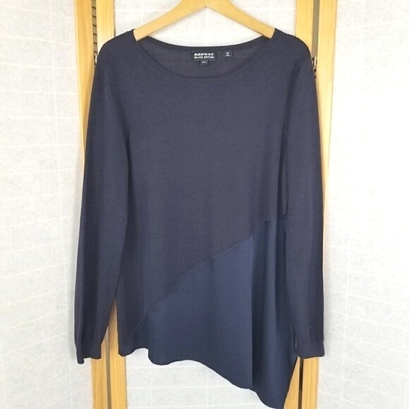 REPEAT Navy Blue Long Sleeve Sweater Mixed Media Cotton Silk Large Tunic