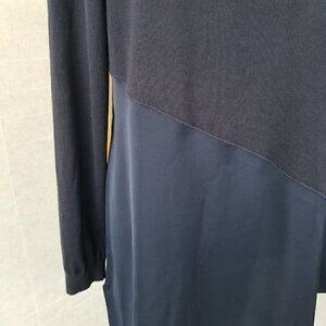Navy Blue Silk Blend Tunic Sweater Mixed Media Size Large Long Sleeves