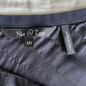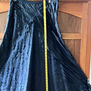 100% navy blue silk ribbon skirt by Nic + Zoe. Side zipper with elasticized waist. Aline shape with ribbons running in diagonal bias direction. Ankle maxi length with petaled like hemline. Size 10. In excellent condition. Only worn once.