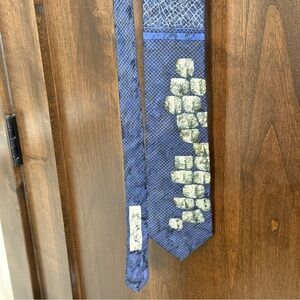 Navy Blue Silk Tie with Intricate unique Pattern 100% Italy imported silk
