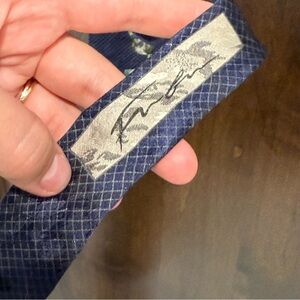 This sophisticated navy blue tie is crafted from a luxurious silk blend, featuring a detailed pattern that enhances its elegance. The deep blue color and intricate design make it a perfect accessory for formal occasions, adding a touch of class to any outfit.