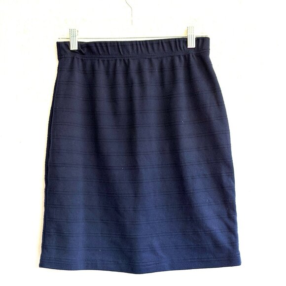Navy blue skirt with horizontal seam details and an elastic waistband. Pre-owned. Great condition.