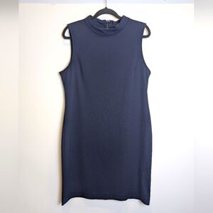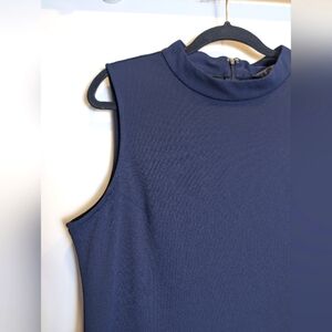 Navy Blue Sleeveless Mock Neck Careerwear Shift Dress Size 14