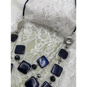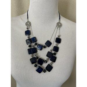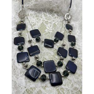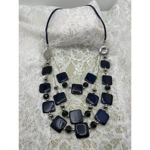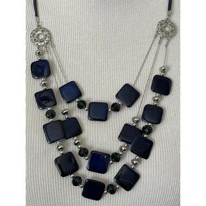 Navy Blue Square & Round Beaded 3-Tier Necklace. 23.5" Full Length. Preowned, Better than normal wear/use. No damage, discoloration or breaks. Clean, smoke-free home. Fashion Jewelry