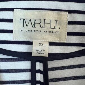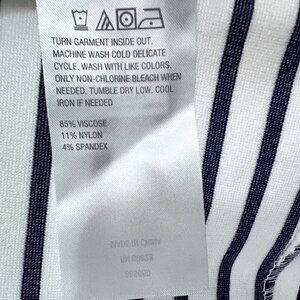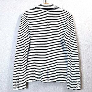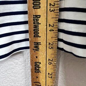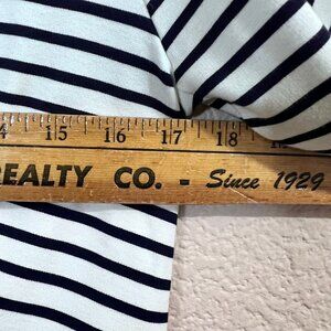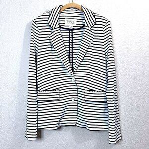 Navy Blue Stripes Ponte Knit Blazer Jacket Nautical Paris Preppy Women XS