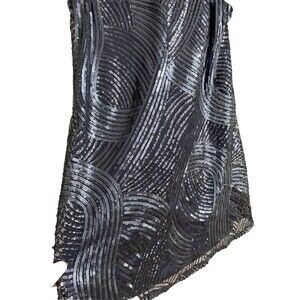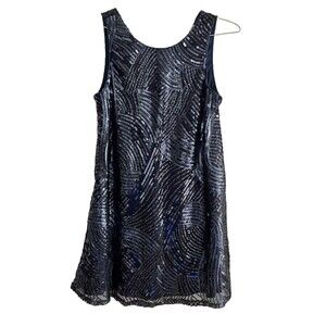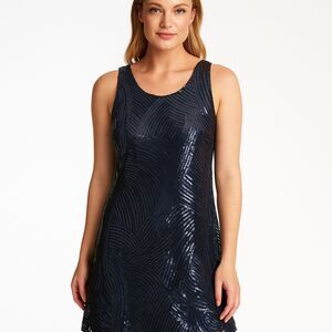 Navy Blue Swirled Pattern Sequined Swing Dress Size Small