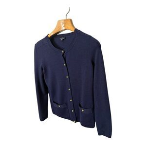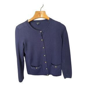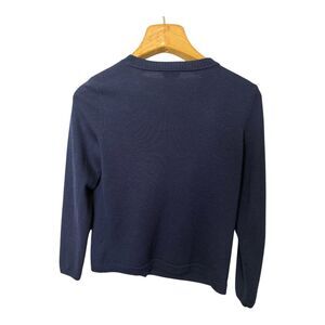 Elegant navy blue women's sweater with a classic design. Perfect for any occasion. GUC slight piling smoke free dog friendly home classic cozy