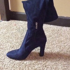 Like brand new Stunning Tall Navy Blue Suede 3 inch boot with double zipper.