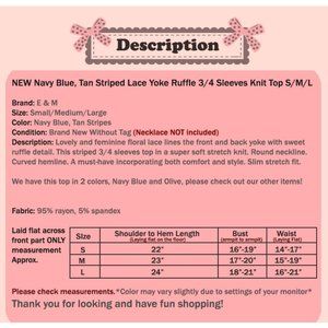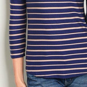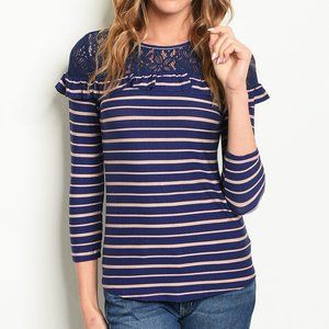 Navy Blue Tan Stripe Lace Ruffle Soft Stretch Top