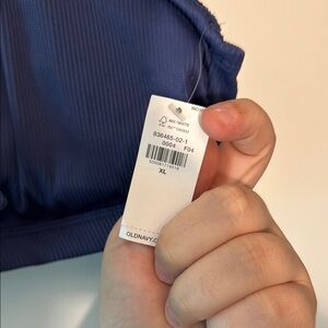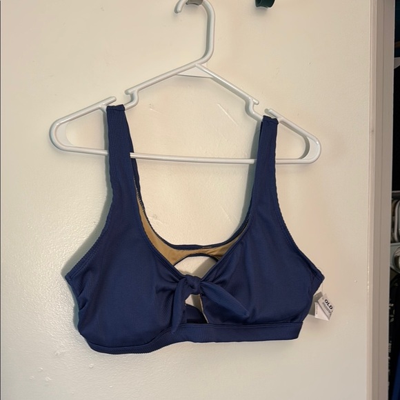 Experience comfort and style with this navy blue bikini top!