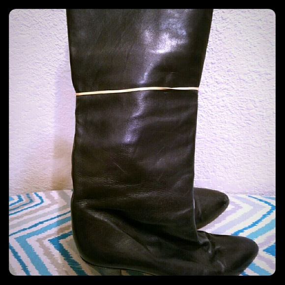 Vintage Navy leather knee high boots, size 7 but fits like a 6.5. Little scuff on front left top toe but in good condition. Previously worn, as they are vintage. Always in style.. i have another pair, just like this listed but burgundy.
