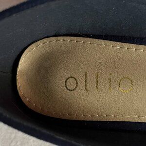 Navy Blue W/Embroidered Flowers Pointed Toe Ollio Flat Shoes