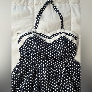 Navy Blue White Polka Dot Halter dress, Bea & Dot by Modcloth, Size L