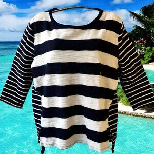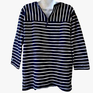 Navy Blue & White Striped Top Double Sided High/Low 3/4 Sleeve by Merona
