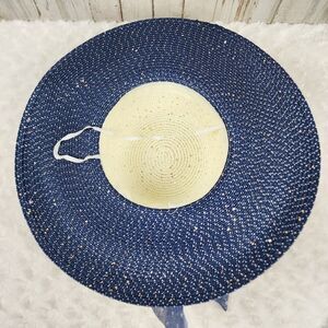 Navy Blue Wide Brim Floppy Sun Hat One Size