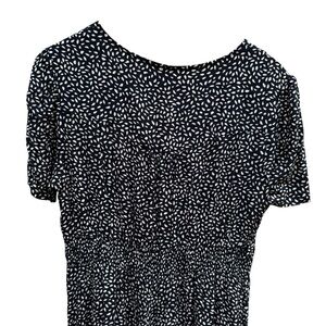 Navy Blue Womens Polka Dot Dress maxi button front XL stretch smocked waist