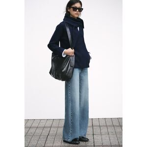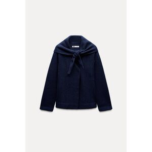 Navy Blue Zara Wool Snap Button Front Scarf Collar Sweater Cardigan Jacket (NWT)