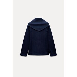Navy Blue Zara Wool Snap Button Front Scarf Collar Sweater Cardigan Jacket (NWT)